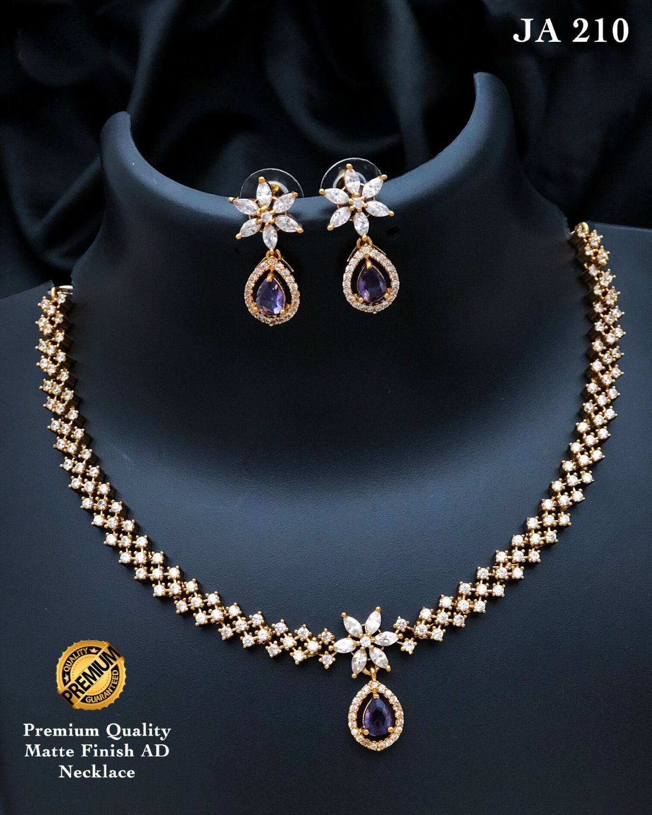 Premium AD Finish Gold Necklace with Earrings